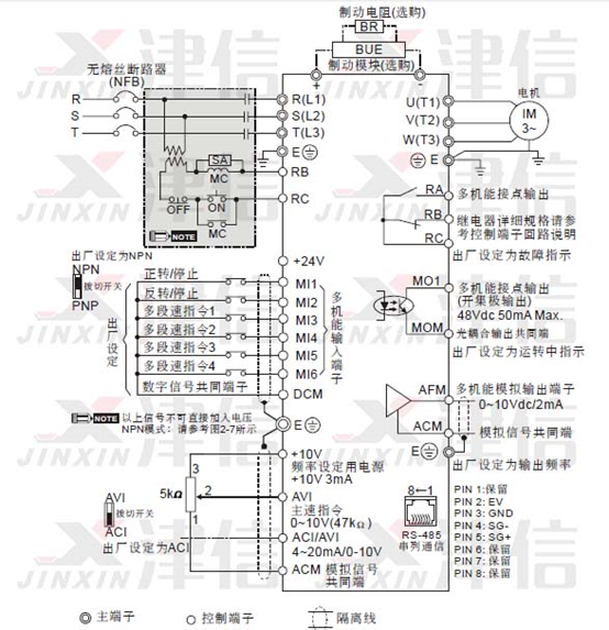 - 主回路配線(xiàn)與控制回路的配線(xiàn)必需隔離,以防止發(fā)生誤操作。