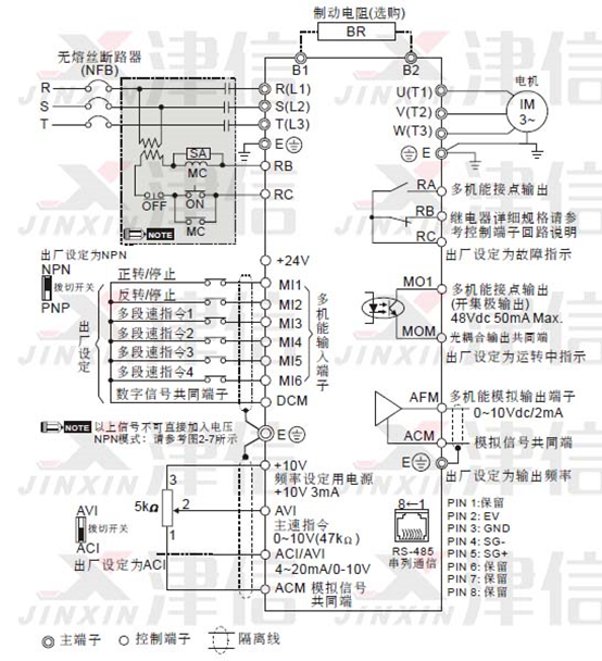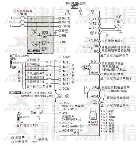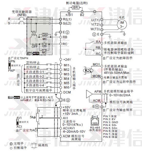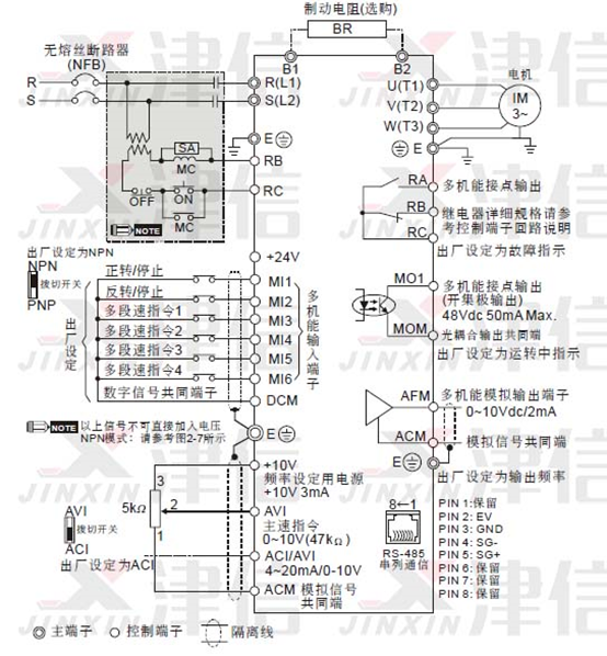 - 控制配線(xiàn)請(qǐng)盡量使用隔離線(xiàn),端子前的隔離網(wǎng)剝除段請(qǐng)勿露出。