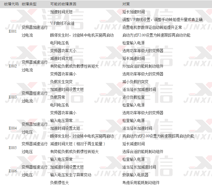 1,故障代碼E001,E002,E003,E004,E005,E006