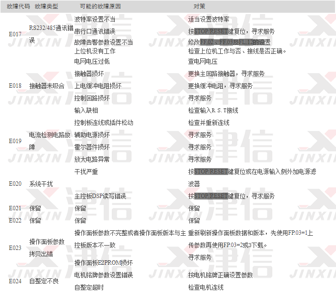 4,故障代碼E017,E018,E019,E020,E021?
