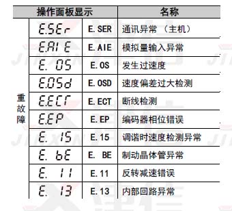 其他重故障還有:E.OHT,E.PTC,E.OPT,OP3,E.PE,E.PUE,E.RET,E.PE2,E.CPU,E.CTE,E.P24,E.CDO,E.IOH,E.SER,E.AIE,E.OS ,E.OSD,E.ECT,E.EP ,E.15 ,E. BE,E.11 ,E.13