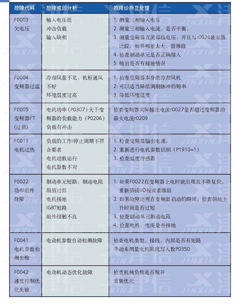 二、F0003欠電壓,F(xiàn)0004變頻器過溫,F(xiàn)0005變頻器過載,F(xiàn)0011電機(jī)過熱,F(xiàn)0022功率組件故障,F(xiàn)0041,F(xiàn)0042