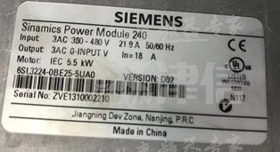 用戶送修一臺西門子G120變頻器,型號為:6SL3224-0BE25-5UA0,故障現(xiàn)象是送電無顯示。以下是功率單元銘牌信息: