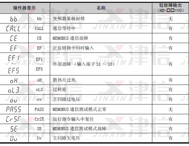 在參數(shù)輸入錯(cuò)誤、參數(shù)間的組合不正確以及通信選購(gòu)件的連接不當(dāng)時(shí)出現(xiàn)的故障顯示。