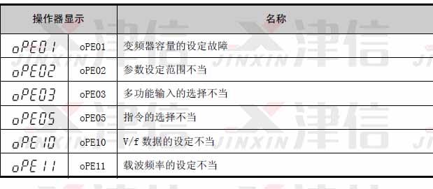 對(duì)策∶檢出故障后,請(qǐng)正確設(shè)定參數(shù)以排除故障原因。在沒(méi)有正確設(shè)定參數(shù)之前,變頻器將無(wú)法起動(dòng)。