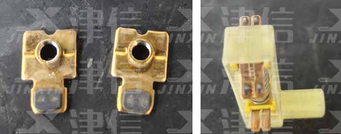 將崩壞的新變頻器拿回來(lái)一看,這次可看到崩壞的地方了,外殼有一處被煙熏黑,模塊整流器處有膠狀物溢出,印刷電路板上有的銅箔已凸顯出來(lái),憑經(jīng)驗(yàn)我知道是整流器崩了,經(jīng)測(cè)量果然如此。下面我就想為什么這次會(huì)和從前不一樣?后來(lái)明白了,這次是型號(hào)G7 3.7KW的變頻器,是G5的改進(jìn)型,這種型號(hào)的變頻器可能是生產(chǎn)商為了降成本,取消了直流保險(xiǎn)絲,所發(fā)生短路時(shí)只有挺著挨崩,這也是沒(méi)有直流保險(xiǎn)絲變頻器的很大的一個(gè)缺陷!